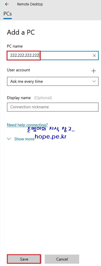 PCs 화면에서, 'PC Name' 입력 후 'Save' 를 클릭 합니다.