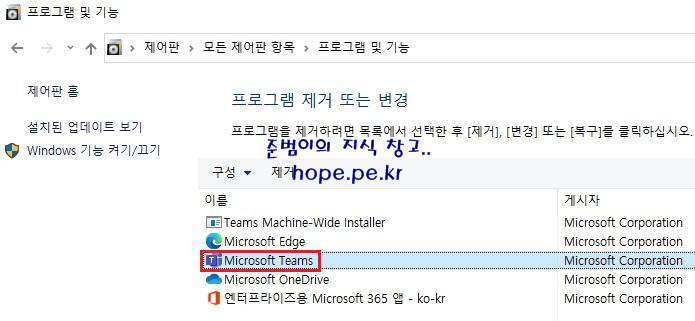 '제어판 > 모든 제어판 항목 > 프로그램 및 기능' 창에서, '엔터프라이즈용 Microsoft 365 앱' 설치가 되었음을 확인 합니다.