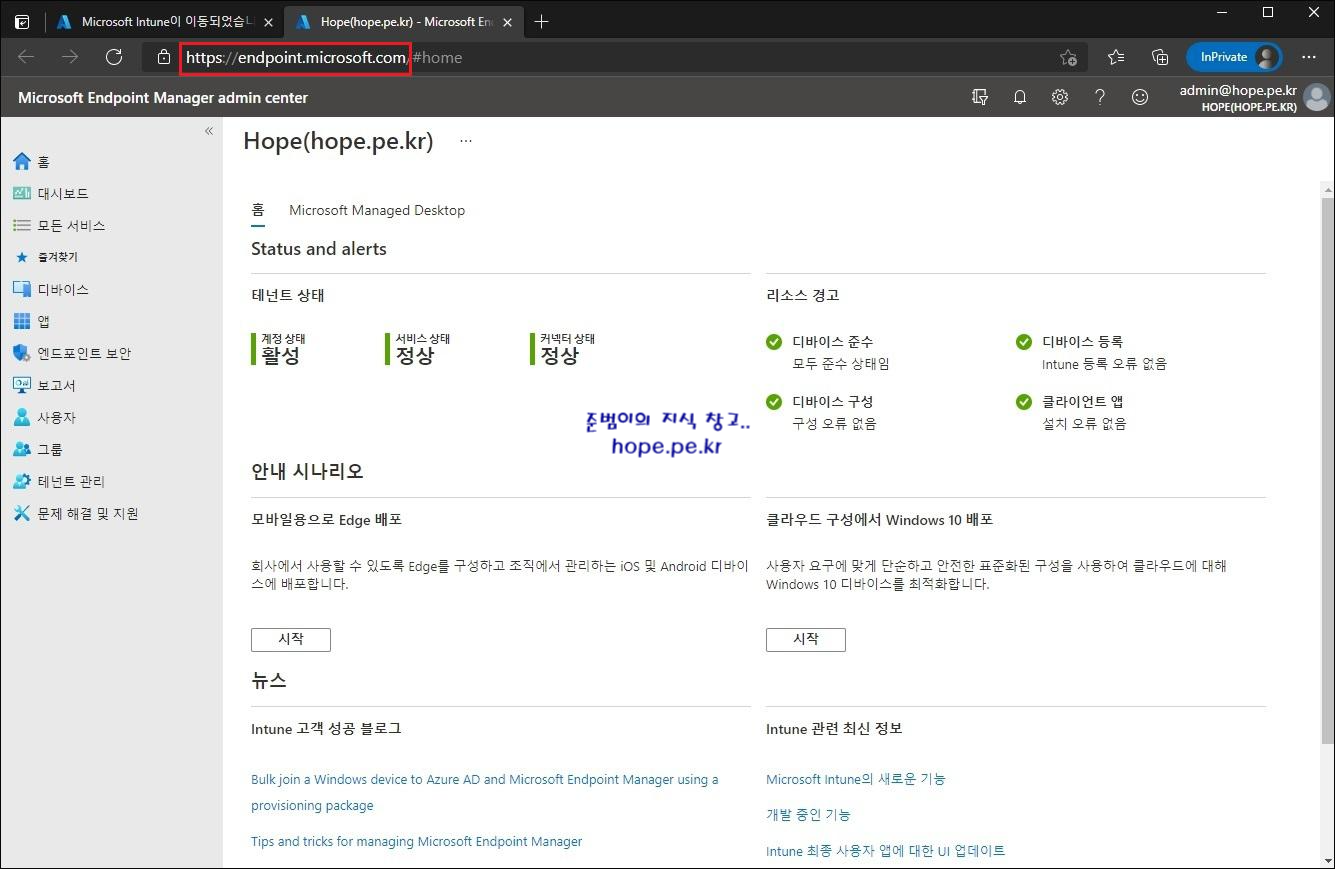 Microsoft Endpoint Manager admin center (https://endpoint.microsoft.com) 사이트로 이동 되었습니다.