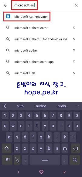 'microsoft au' 입력 후 검색 되는 'Microsoft Authenticator' 을 터치 합니다.