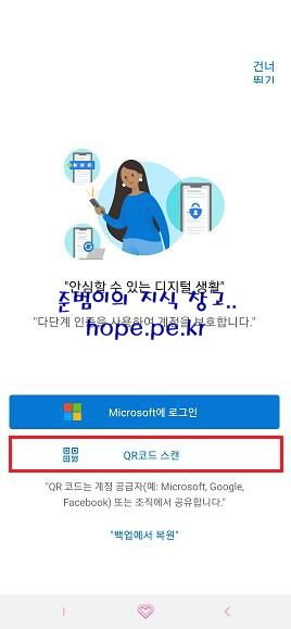 QR 코드 스캔 화면 에서, Microsoft Authenticator 앱 설치를 위해 스마트폰 으로 이동 합니다.