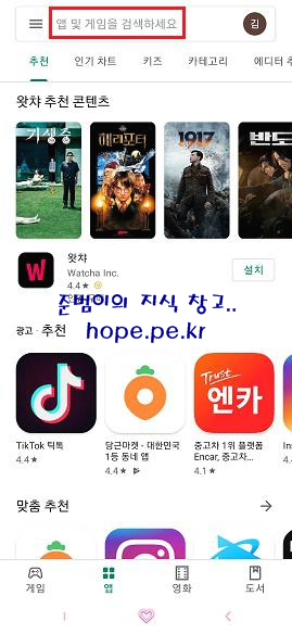 스마트폰에서, 'PLAY 스토어' 앱 실행 후 '검색 상자' 를 터치 합니다.