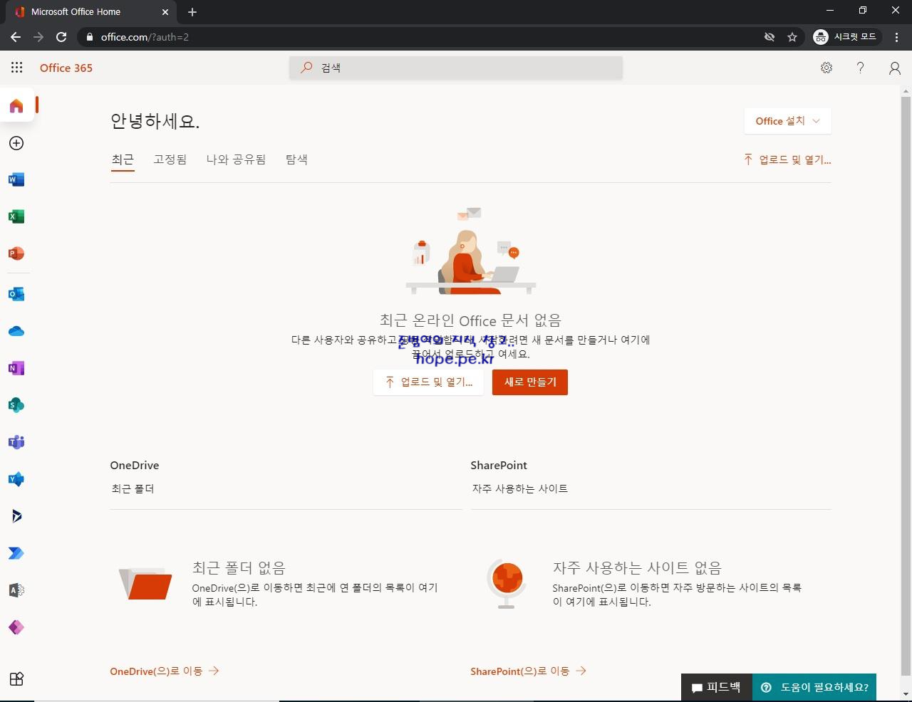 'Office 365' 사이트에 정상적으로 로그인 됩니다.