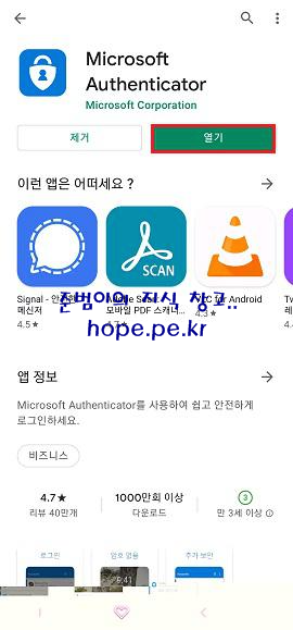 설치가 완료되면, '열기' 를 터치 합니다.