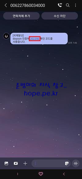 스마트폰에서 '확인 코드' 를 수신 합니다.