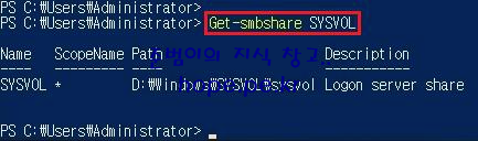 마지막으로 DC가 SYSVOL 폴더를 공유하는지 확인하겠습니다.