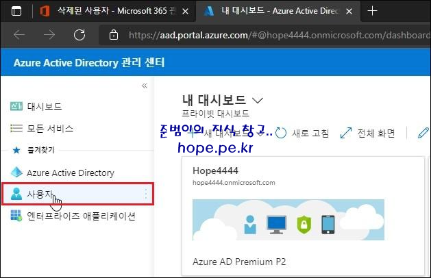 Azure Active Directory 관리 센터 페이지에서 '사용자' 를 클릭 합니다.