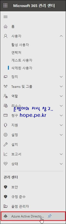 'Microsoft 365 관리 센터' 접속후 > 'Azure Active Directory' 를 클릭 합니다.