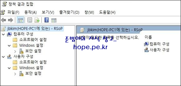 cf) 그룹 정책을 아무것도 적용하지 않은 상태의 '정책 결과 집합' 창 화면 입니다.