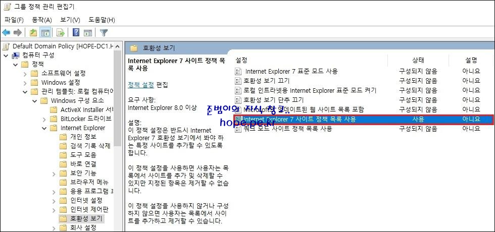 이번 포스팅에서는 "Active Drectory 그룹 정책으로 Internet Explorer 11 호환성 보기 목록 사이트 추가" 방법에 대해 알아보겠습니다.