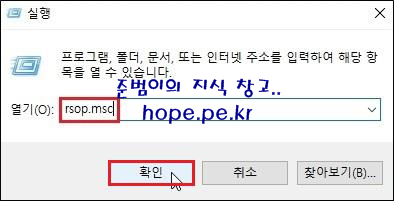 클라이언트 재부팅 후 실행 창 (Windows Key + R Key)에서, 'rsop.msc' 입력후 '확인' 을 클릭 합니다.