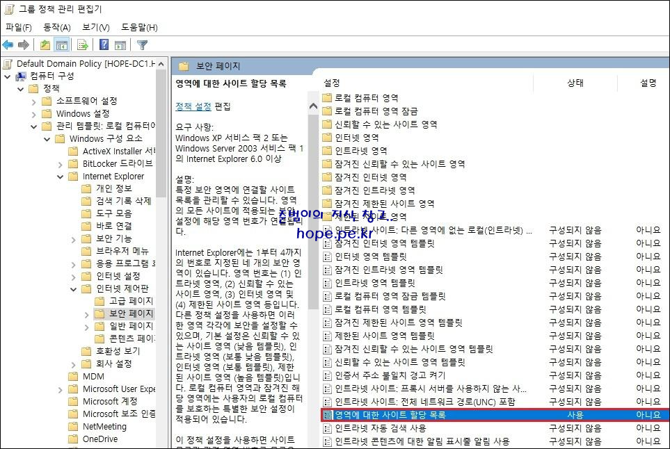 결론적으로, 그룹 정책으로 신뢰할 수 있는 사이트를 추가하는 방법중..