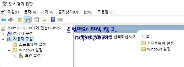 cf) 그룹 정책을 아무것도 적용하지 않은 상태의 '정책 결과 집합' 창 화면 입니다.