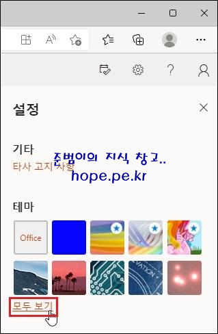 설정 화면에서, 테마 메뉴가 보입니다. '모두 보기' 를 클릭 합니다.