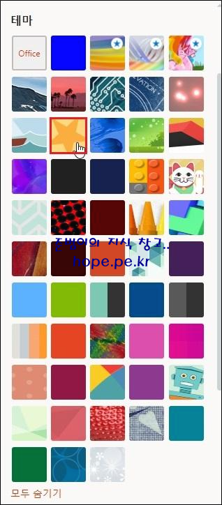 다양한 테마중에서 마음에 드는 테마를 클릭하면 바로 적용이 됩니다. 저는 '반짝이는 불꽃' 테마를 클릭 하겠습니다.