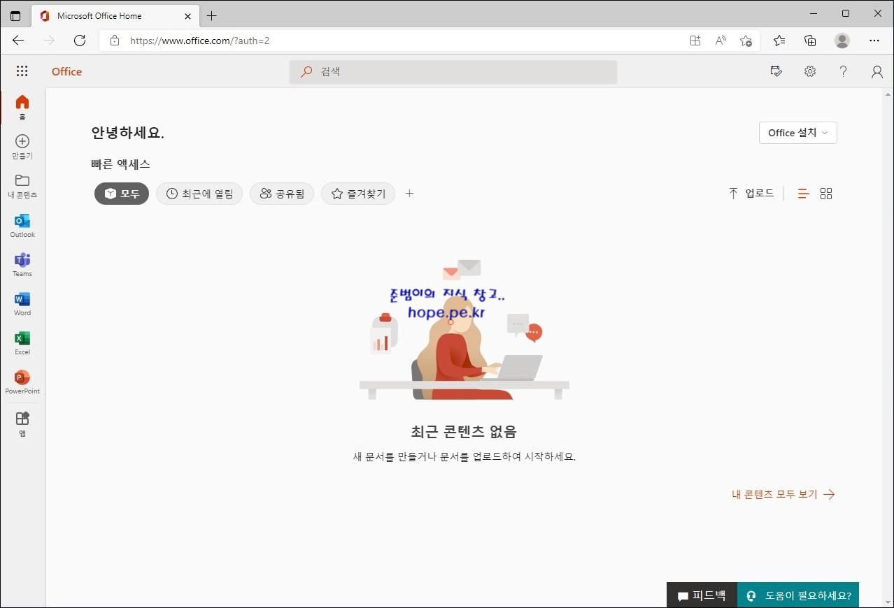 Office 365 환경 개인 설정