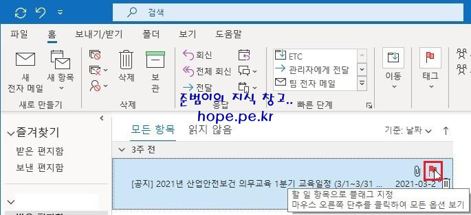 이상으로 "Outlook의 메일에 플래그 지정하여 To-Do에서 사용하기" 방법에 대해 알아보았습니다.