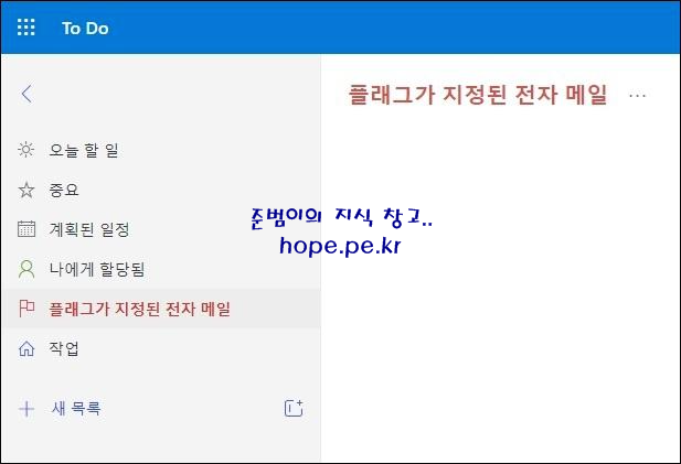 웹브라우저에서 To-Do (to-do.office.com)에 접속 시 '플래그가 지정된 전자 메일' 메뉴가 보이지 않는 경우가 있습니다.