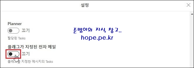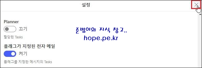 플래그가 지정된 전자 메일 메뉴가 켜짐을 확인 후 '닫기 버튼' 을 클릭 합니다.