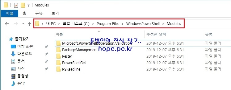 참고로 설치된 모듈은 'C:\Program Files\WindowsPowerShell\Modules' 경로에서 확인 가능합니다.