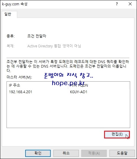 해당 도메인의 속성 창에서, '편집' 을 클릭 합니다.