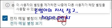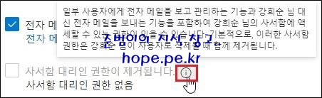 사서함 대리인 권한 제거 도움말 입니다. (일부 사용자에게 삭제한 사용자의 사서함을 액세스 할 수 있는 권한을 부여할 수 있습니다.)