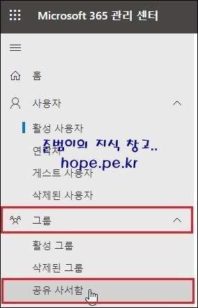 'Microsoft 관리 센터 > 그룹 > 공유 사서함' 을 클릭 합니다.