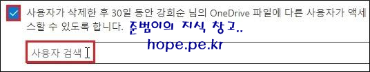 ‘사용자가 삭제한 후 30일 동안 OOO 님의 OneDrive 파일에 다른 사용자가 액세스할 수 있도록 합니다.’ 에 체크 후 ‘사용자 검색’ 을 클릭 합니다.