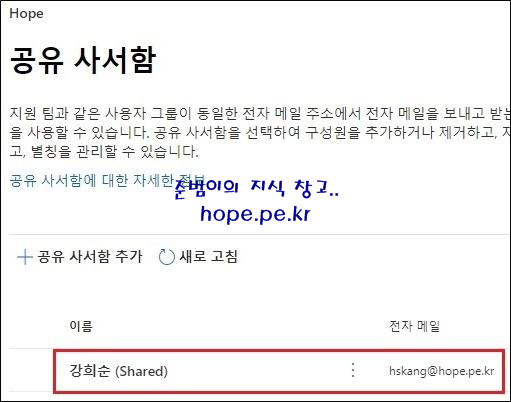 'Microsoft 관리 센터 > 그룹 > 공유 사서함' 을 클릭 합니다.