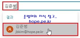 삭제하는 사용자의 전자 메일 액세스 권한을 부여할 사용자 이름 입력 후 검색되는 ‘사용자’ 를 클릭 합니다.