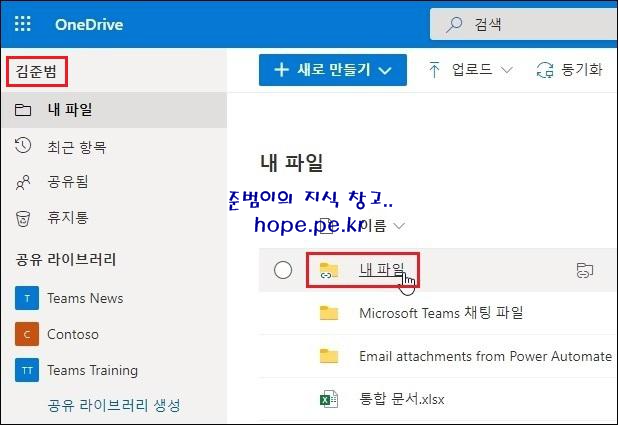 내 OneDrive 페이지로 이동 됩니다. 그리고 '내 파일' 이라는 바로 가기가 생성 되었습니다. '내 파일' 을 클릭 합니다.