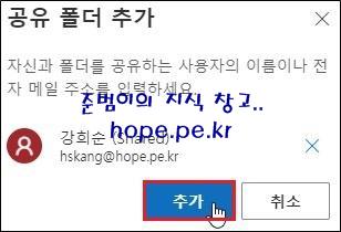 공유 폴더 추가 창에서, '공유 사서함' 입력 후 '검색되는 공유 사서함' 을 클릭 합니다.