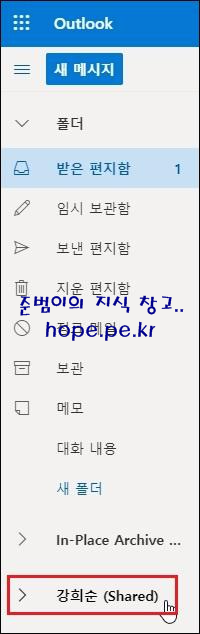 왼쪽 탐색 창 하단에 '공유 사서함' 이 추가 되었습니다.