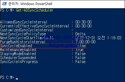 cf) SyncCycleEnabled 의 값이 False이면, 동기화 스케줄러가 사용되고 있지 않다는 의미 입니다.