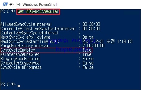cf) SyncCycleEnabled 의 값이 True이면, 동기화 스케줄러가 사용되고 있다는 의미 입니다.