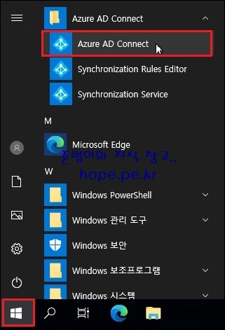 '시작 > Azure AD Connect > Azure AD Connect' 를 클릭 합니다.