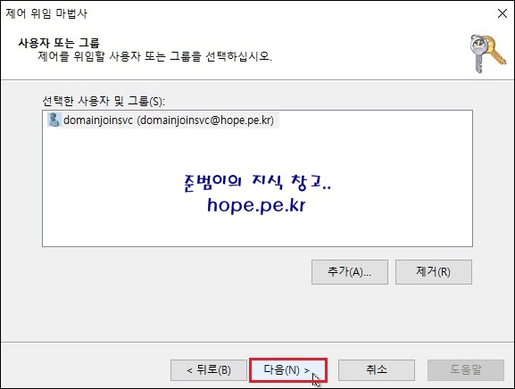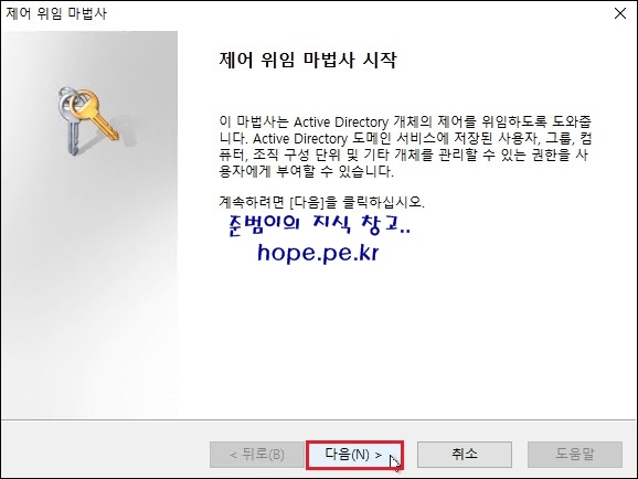 제어 위임 마법사 창에서, '다음' 을 클릭 합니다.