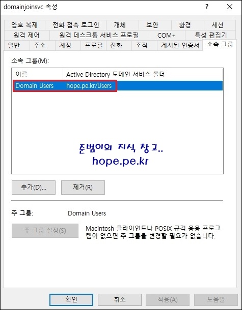 참고로 해당 계정의 소속 그룹을 확인해보면, 'Domain Users' 그룹에만 속해있는 단순 사용자 계정입니다.