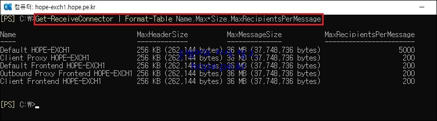 | Exchange Server 2010 메세지 크기 제한 확인 (2) | 2018.06.26 |