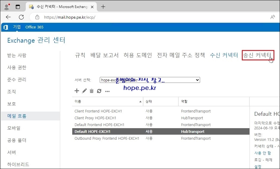 '송신 커넥터' 를 클릭 합니다.