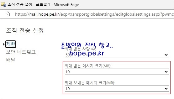 이상으로 "Exchange Server 2019 메일 송수신 크기 변경" 방법에 대해 알아보았습니다.