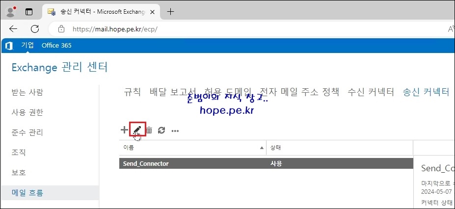 송신 커넥터에서 '편집' 을 클릭 합니다.