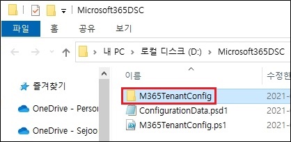 'D:\Microsoft365DSC' 폴더에 'M365TenantConfig' 폴더가 생성 되었습니다.