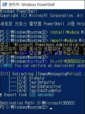 이상으로 'Microsoft365DSC 활용 - 테넌트 간 Teams 메시징 정책 동기화' 방법에 대해 알아보았습니다.