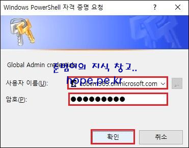 설정을 동기화 하기 위해 '타겟 테넌트 관리자 계정 정보' 입력 후 '확인' 을 클릭 합니다.