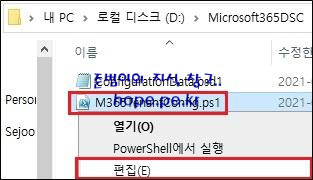 'M365TenantConfig.ps1' 파일에서, 우클릭 후 '편집' 을 클릭 합니다.