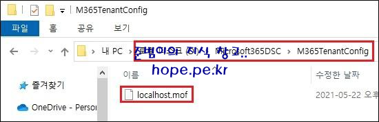 그리고 M365TenantConfig 폴더안에 'localhost.mof' 파일이 생성 되었습니다.