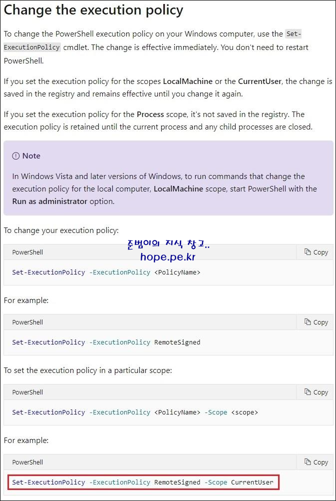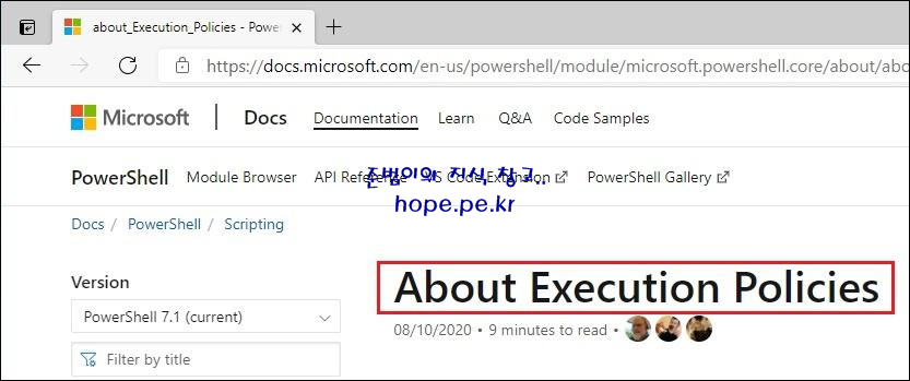 바로 Microsoft Docs 'About Execution Policies' 사이트로 리다이렉션 되네요.