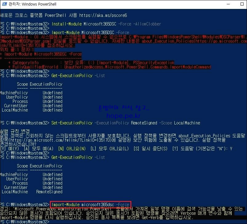 이상으로 'Windows 10에서 Microsoft365DSC Import-module 오류 조치' 방법에 대해 알아보았습니다.