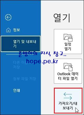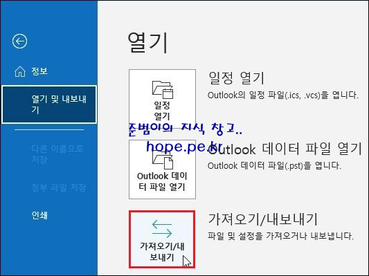 열기 화면에서, '가져오기/내보내기' 를 클릭 합니다.